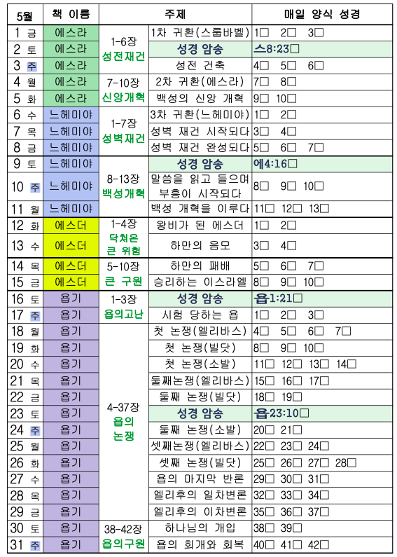 5월통독:에스라/느헤미야/에스더/욥기 본문