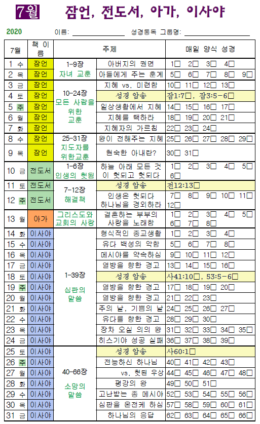 7월통독: 잠언/전도서/아가/이사야 본문